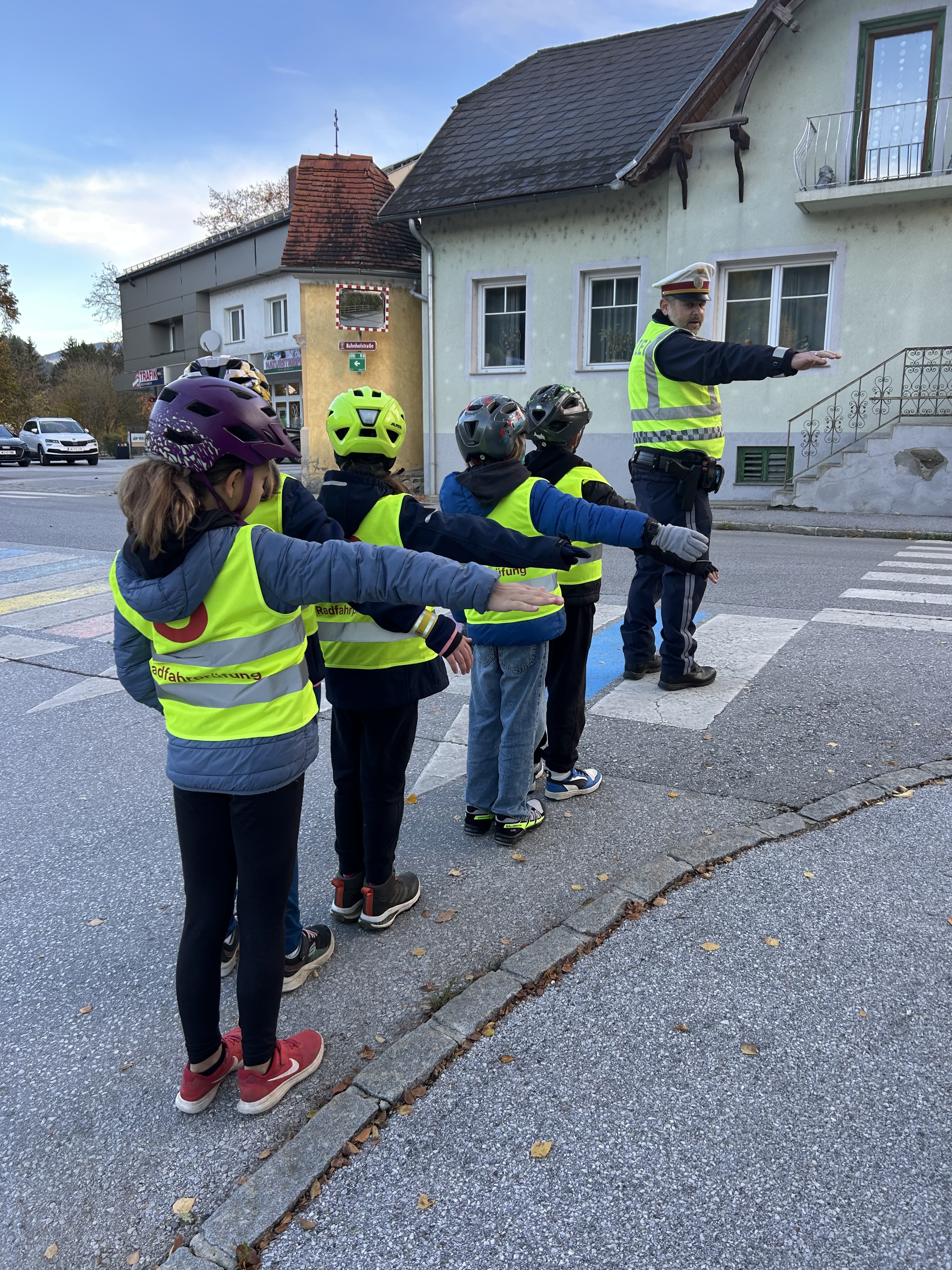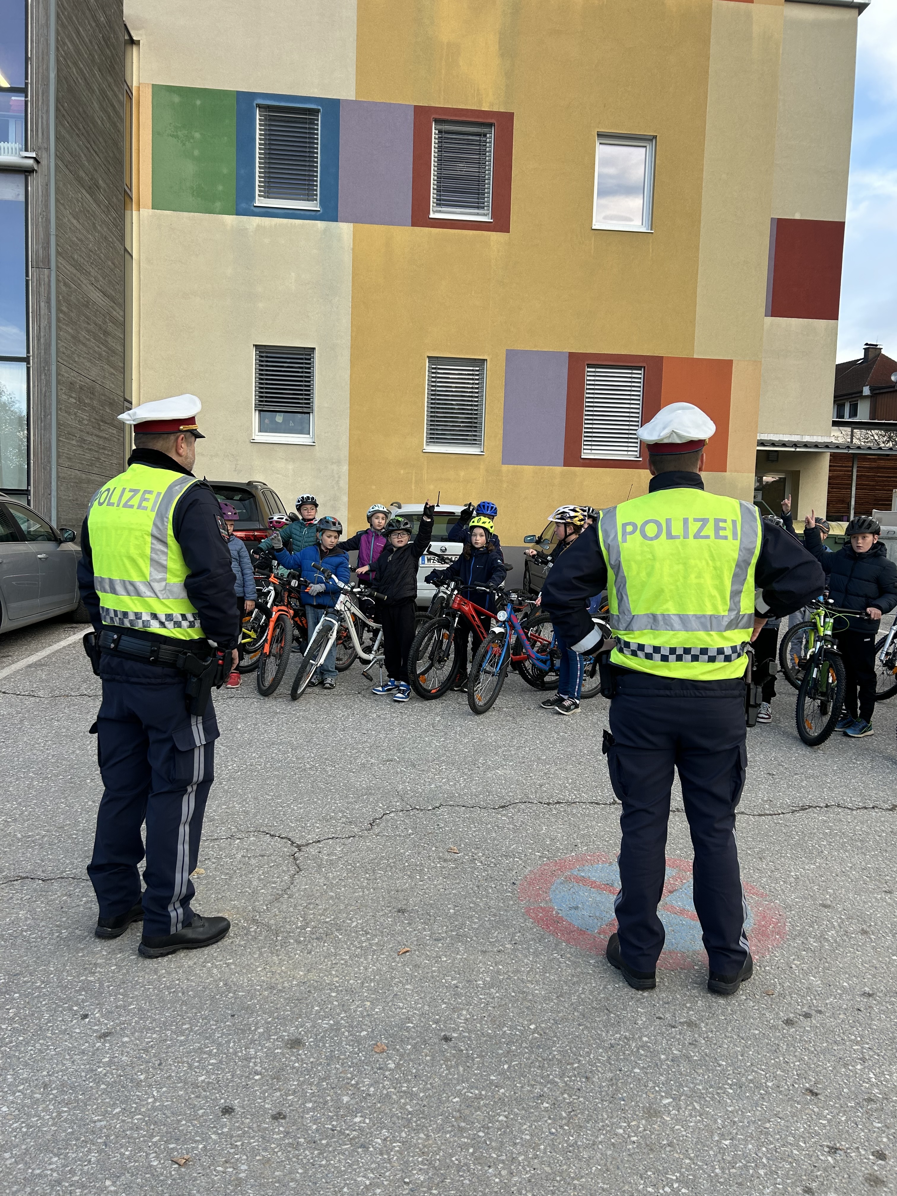Am 23. Oktober war für die vierte Schulstufe ein aufregender Tag. In der Früh startete sie mit einer praktischen Übungsstunde für die bevorstehende Fahrradprüfung. Gemeinsam mit der Polizei konnten sie ihr Wissen und ihre Fahrkünste im Straßenverkehr in Anger unter Beweis stellen.