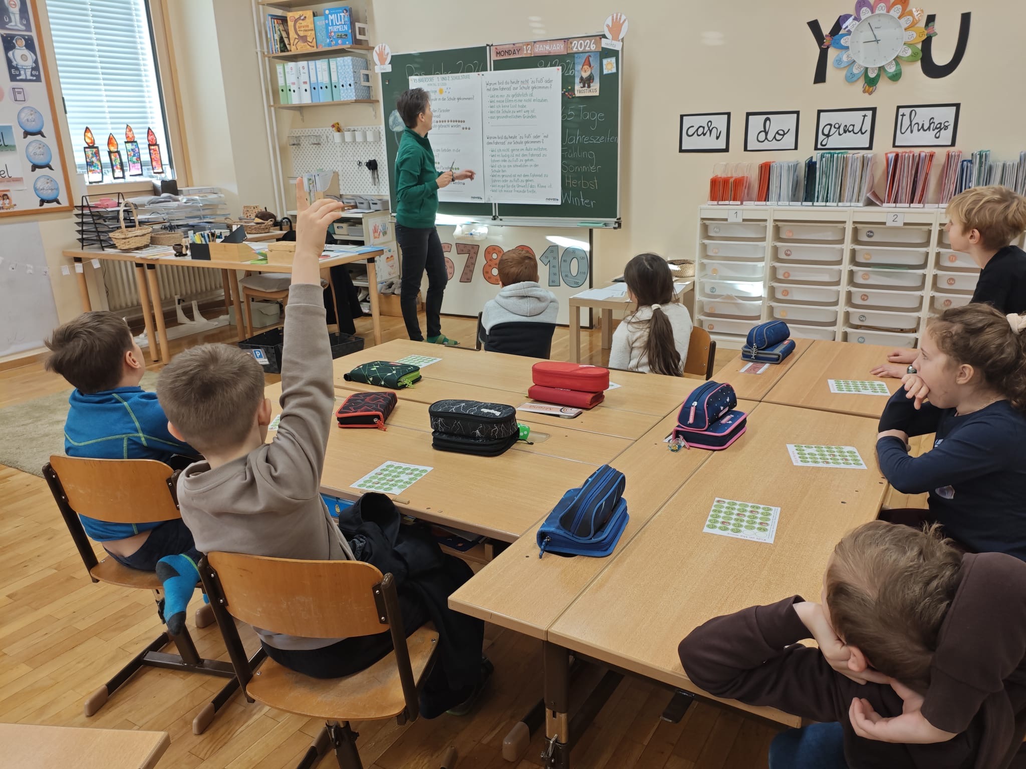 Im Rahmen unseres Klimaschutzprojekts mit Barbara und Maria drehte sich heute alles um das Thema Mobilität. Gemeinsam mit den Kindern wurde besprochen, wie wir uns fortbewegen, welche Auswirkungen verschiedene Verkehrsformen auf das Klima haben und welche umweltfreundlichen Alternativen es gibt.