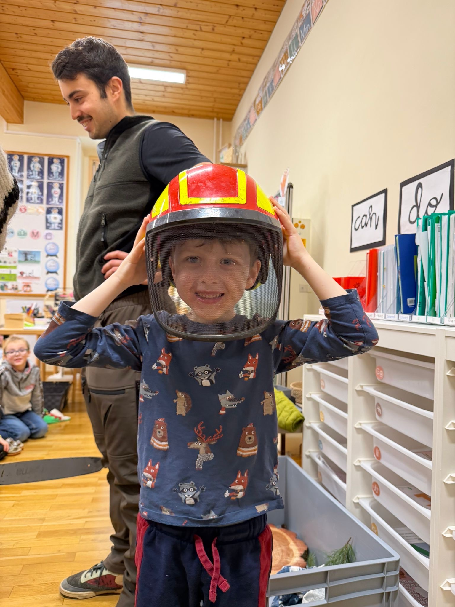 Ein besonderes Highlight war der Besuch eines externen Facharbeiters, der den Kindern spannende Einblicke in das Leben und Arbeiten am Hof sowie in die Holzarbeit im Wald gab.