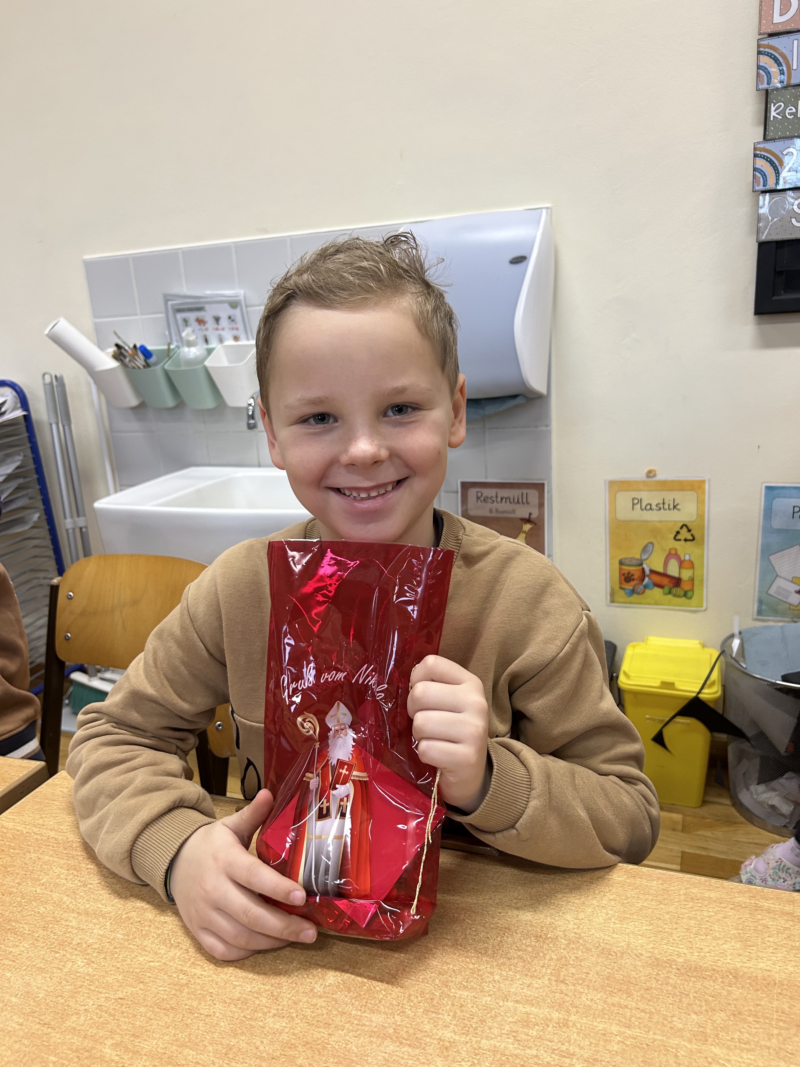 Zum Abschluss gab es für alle eine kleine Nikolausgabe, über die sich die Kinder sehr freuten. Wir bedanken uns herzlich beim Nikolaus für seinen Besuch und die festliche Stimmung, die er in unsere Schule gebracht hat.